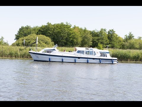 Classic sliding canopy cruiser. Azure Emblem has a raised saloon and helm which offers great views while cruising.